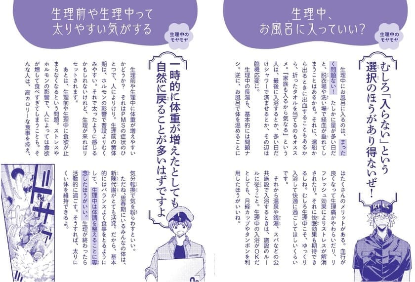 その他「生理中に、お風呂に入ってもいい?」「生理前や生理中って太りやすい気がする」そんな10代女性のあるあるの疑問やもやもやにも、細胞キャラクターたちがズバリ答えてくれます。